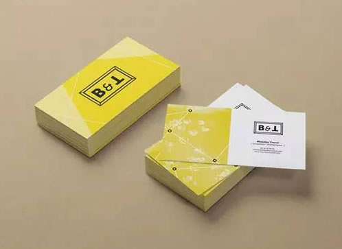(2)不對(duì)稱軸線形。名片的主題、標(biāo)志、輔助說明文案都排在一條實(shí)際或象片的縱線的一邊。習(xí)慣上把主題、標(biāo)志、輔助說明文案排在軸線的右邊,一律向左看齊,也可以反過來向右看齊。
