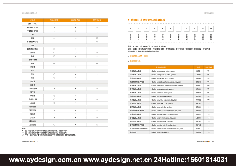 AYDESIGN十+年持續(xù)專注智能電纜行業(yè)企業(yè)VI設(shè)計,品牌標(biāo)志logo設(shè)計,畫冊樣本目錄設(shè)計印刷制作服務(wù);提供動力電纜畫冊設(shè)計,控制電纜樣本設(shè)計,數(shù)據(jù)電纜宣傳冊設(shè)計,同軸電纜目錄設(shè)計印刷制作。業(yè)務(wù)推廣關(guān)鍵詞:動力電纜樣本設(shè)計,控制電纜畫冊設(shè)計,數(shù)據(jù)電纜宣傳冊設(shè)計,同軸電纜目錄設(shè)計,光纖信號纜選型目錄設(shè)計,復(fù)合電纜畫冊設(shè)計,傳感器電纜樣本設(shè)計,伺服動力電纜宣傳冊設(shè)計,測量系統(tǒng)電纜目錄設(shè)計,示教器電纜選型目錄設(shè)計,編碼器電纜產(chǎn)品畫冊設(shè)計,執(zhí)行器電纜樣本設(shè)計,拖鏈電纜選型目錄設(shè)計,總線電纜畫冊設(shè)計